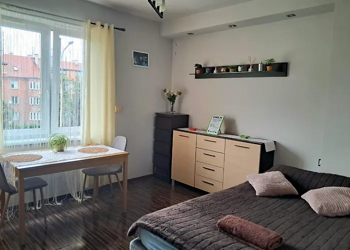 Вроцлавская ратуша находится примерно в 3 км от этих апартаментов площадью 25 м^2, а Королевский дворец - в 2 км. Центр Вроцлава находится всего в 4 км от этих 1-комнатных апартаментов. Неподалеку можно посетить Вроцлавский аквапарк.
